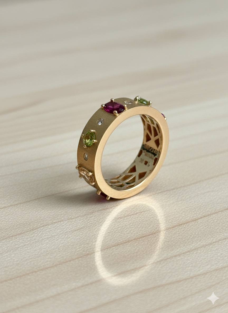 انگشتر رنگین کمان/طلا 18عیار-طراحی خاص و مینیمال با جلوه ای خلص و منحصربفرد/نگین ها درجه1و مقاومتماس بگیرید