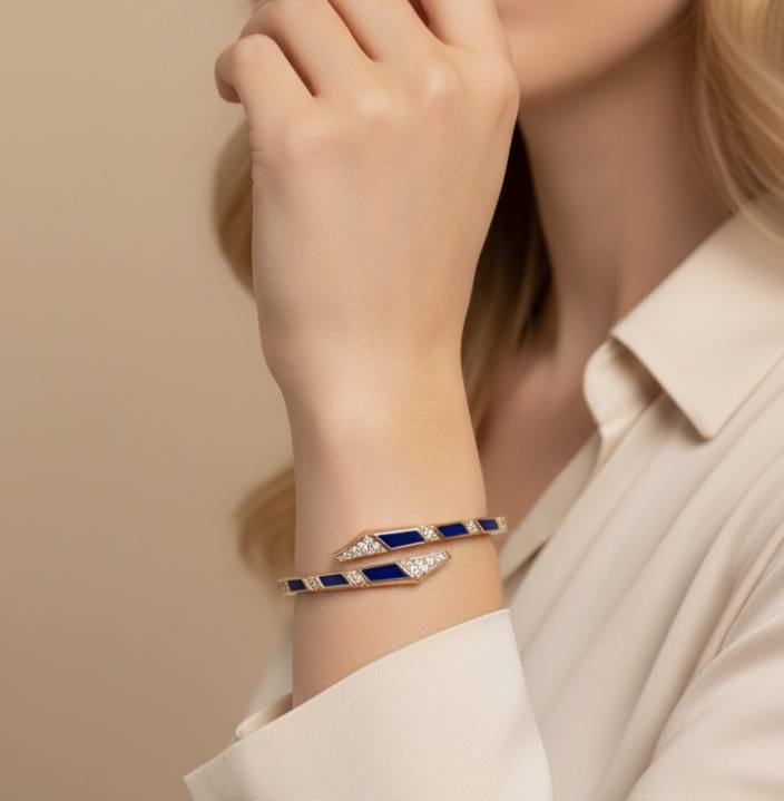 بنگل هرمس طلا ۱۸ عیار – طراحی لوکس با نگینهای اتریشی | قابل سفارش در سایزهای مختلف