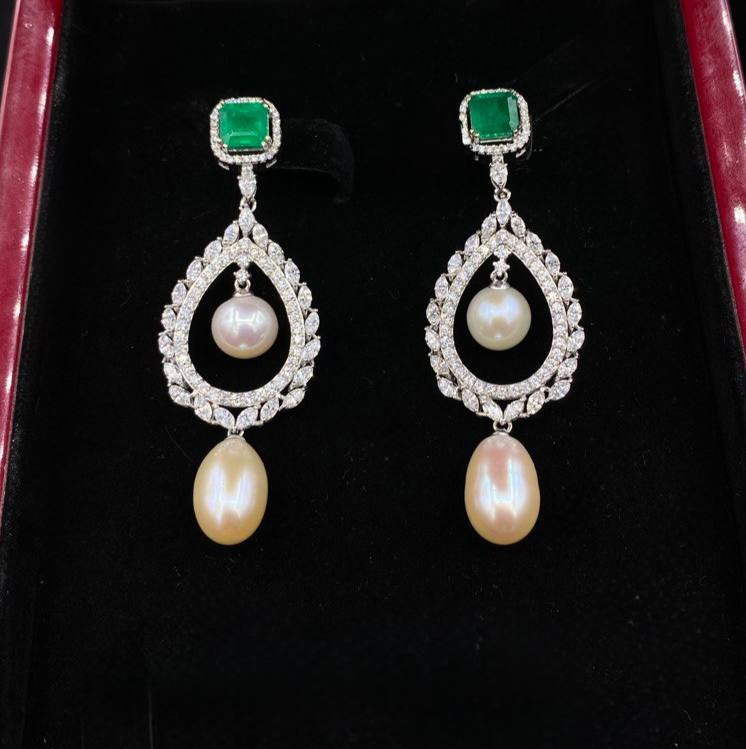 گوشواره ملکه-طلا 18 عیار /طراحی بسیار منحصربه فرد قابل سفارش با برلیان و سنگ اتریشی