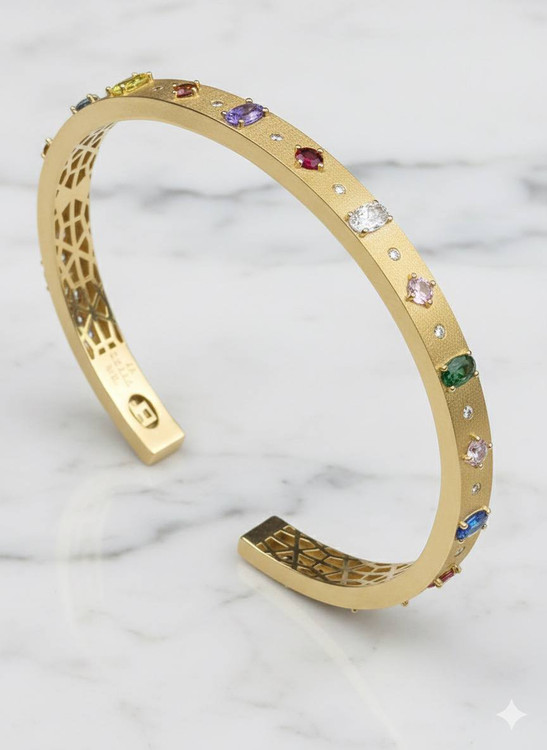 بنگل رنگین کمان/ طلا 18 عیار-بسیار شیک ، ظریف و ترند/سنگ های درجه1 و مقاوم
