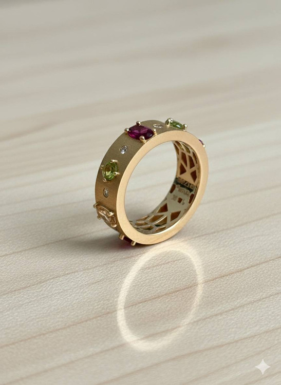 انگشتر رنگین کمان/طلا 18عیار-طراحی خاص و مینیمال با جلوه ای خلص و منحصربفرد/نگین ها درجه1و مقاوم